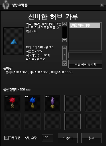 회수될 확률을 50%라고 생각하고 신비한 허브 가루를 500회 제작해보기로 하였습니다.