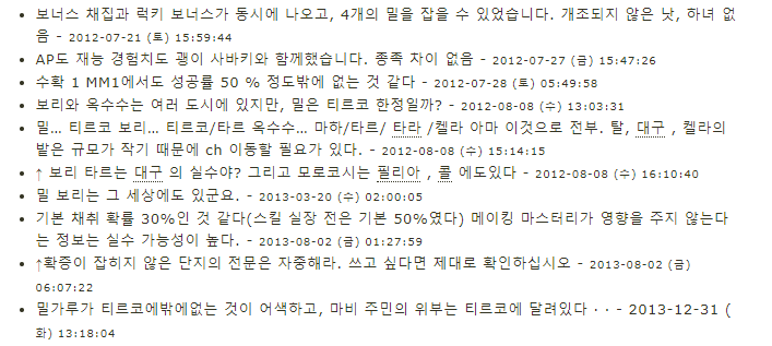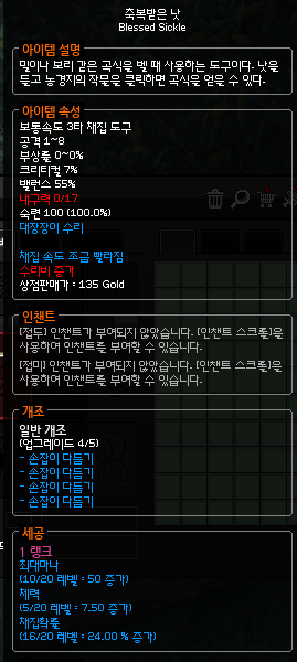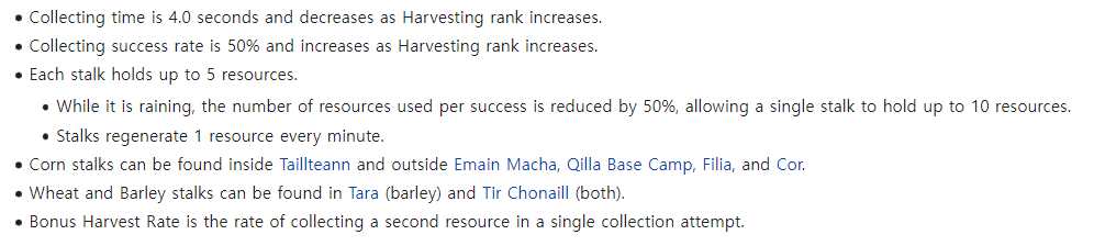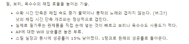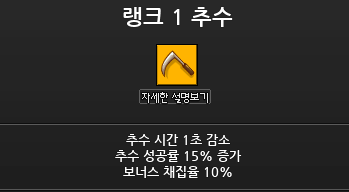 1. 추수의 기본채집확률은 35% 이며 1랭크달성시 50%가된다.