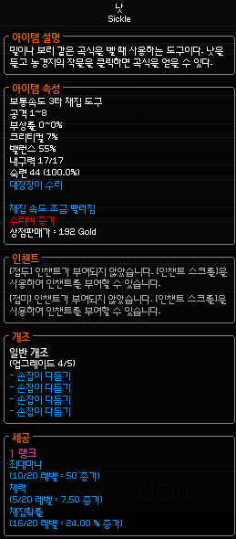 낫 내구도가 다달때까지 해보았는데 실패가 없었다.
