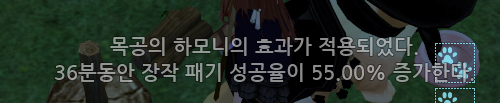 40%(기본확률) + 15%(메이킹 1랭크) + 15%(목공1랭크) + 8%(이웨카장작도끼) +풍년가(5%)